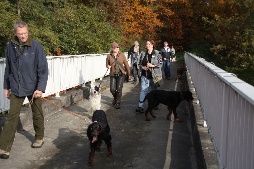 Gut gelaunt traten wir den Rückweg an und trafen wie auch beim Hinweg auf allerlei andere Hunde. Dieser Cocker war besonders neugierig. Als Connor und Finlay sich jedoch umdrehten um "zurück zu schnüffeln", trat er schnell den Rückzug an: "Fraucheeeeheeeen, Setteralaram! Ganz viele von der Sorte!!!"