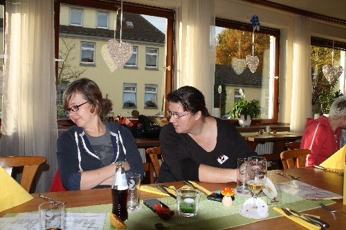 Schließlich kehrten wir mit der gesamten Truppe in die "Unfass-Bar" ein. Wollten wir uns zuerst mit unseren Hunden vor dem Lokal niederlassen, um mit den vielen Füßen und Pfoten nicht zu viel Dreck zu machen, protestierte der Wirt umgehend :o) Er hatte extra für uns den Saal eingedeckt und Näpfe bereit gestellt! Natürlich dürften wir mit unseren Hunden auch IN die "Unfass-Bar". DAS nennen wir wirklich gast- und hundefreundlich und empfehlen das Lokal sehr gerne weiter an Hundebesitzer, die sich vor oder nach einem schönen Spaziergang in der Gegend gemütlich stärken und den Hund dabei haben wollen. Bei größeren Hundegruppen ruft man am besten vorher an und sagt Bescheid.