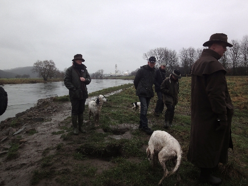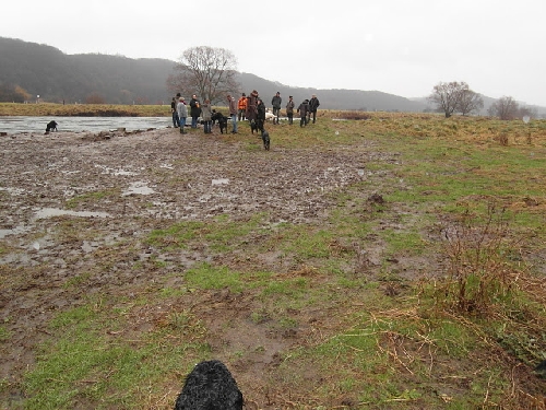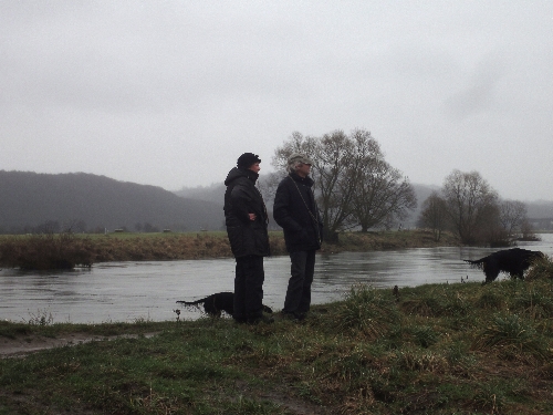 Die Ruhr führte viel Wasser und war auf Grund ihrer Strudel und Strömungen mit Vorsicht zu genießen. Aber unseren Settern reichten die Pfützen, der Schlamm und das nasse Gras "zur Erfrischung" ;o)