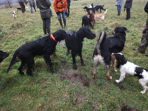 Die Runde war diesmal leider komplett Irish Setter-los. Gordon und English Setter tummelten sich auf den Wiesen und fanden den Schlamm gar nicht schlimm, im Gegenteil :o)