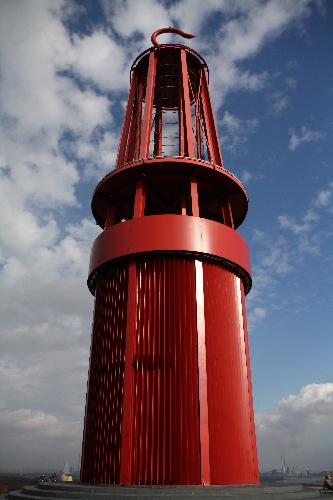 Aber das Highlight der Halde Rheinpreußen ist natürlich "das Geleucht", eine überdimensionale Grubenlampe, in die man auch gehen kann und mittels einer Wendeltreppe im Inneren bis zu einer Aussichtsplattform gelangt. Von hier aus hat man einen tollen Ausblick, gerade bei so sonnigem Wetter. Die RheinRuhrSetter sahen von hier oben ganz klein aus :o)